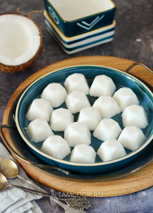 Мне желе из кокосового молока понравилось вприкуску с кофе. А вы решайте, как вам будет вкуснее.