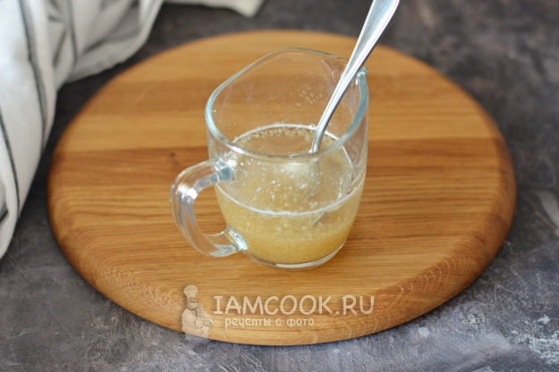 Желатин залейте холодной водой и оставьте для набухания на 10-15 минут.