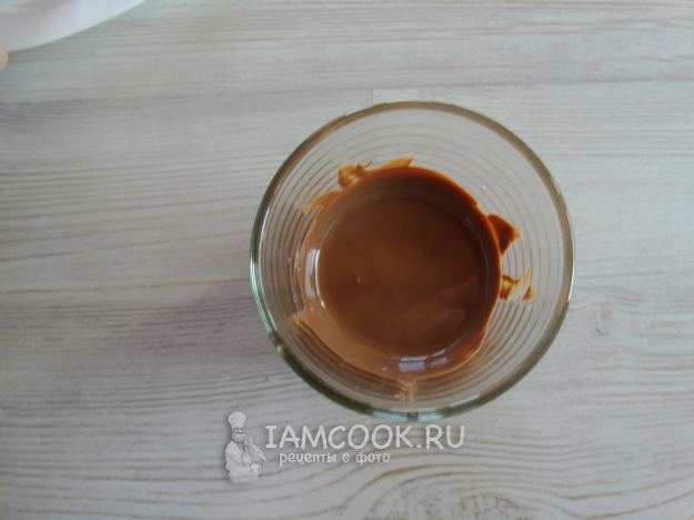 Растопить шоколад удобным способом. Я растапливаю в микроволновой печи "импульсами" от 30 секунд до 1 минуты.