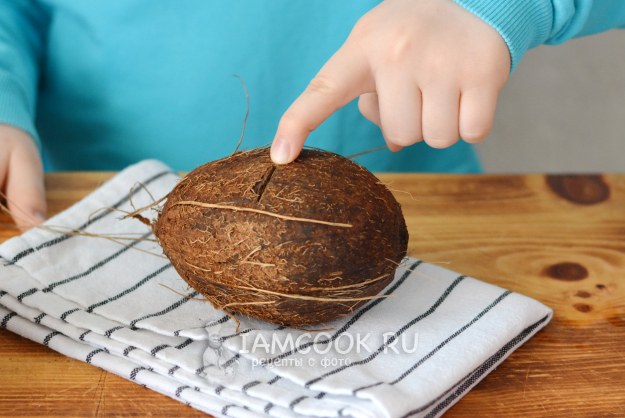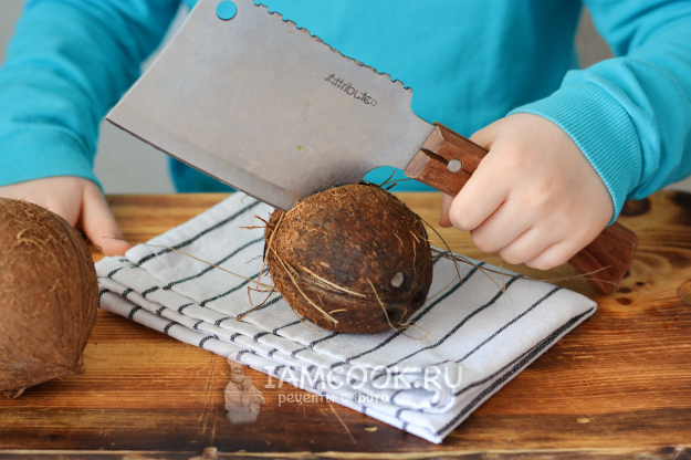 Иногда, рекомендуют перед вскрытием поместить кокос в нагретую духовку на 10 минут, чтобы он дал трещину, но я так никогда не делаю.