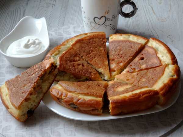 Выпекать пирог при температуре 180 градусов до румяного состояния.