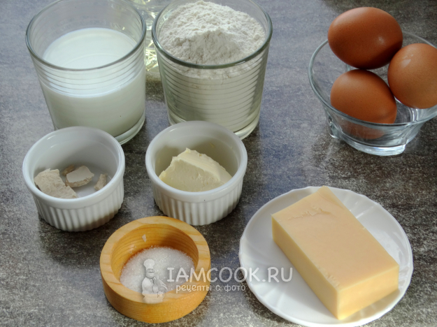Пирог с омлетом готовим из такого набора ингредиентов.