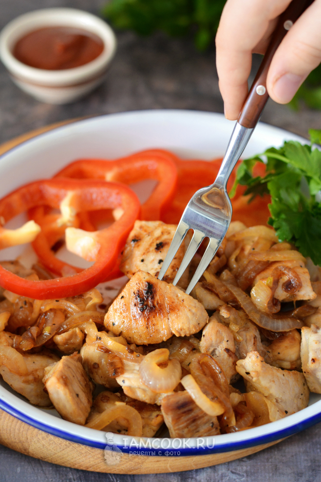 Как только мясо и лук хорошо поджарились - блюдо готово, снимайте сковороду с огня.