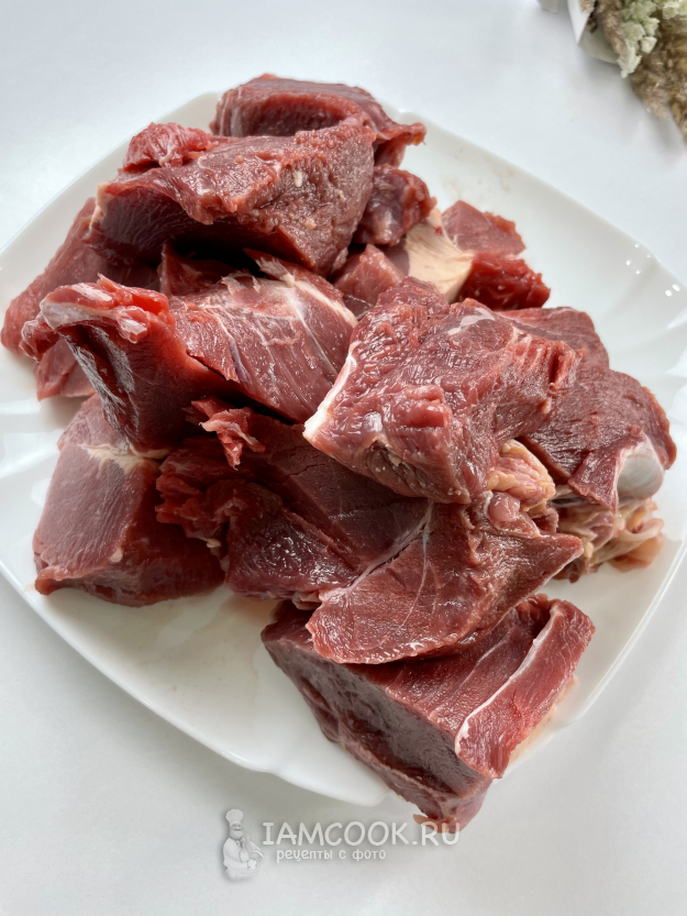 Мясо нарезаем на крупные куски.