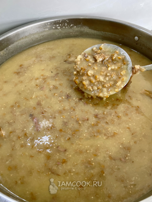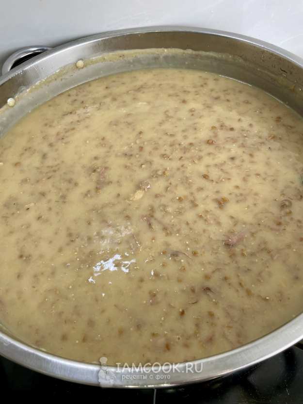 Прошло 12 часов. Перемешиваем халим и кипятим на сильном огне 10 минут.