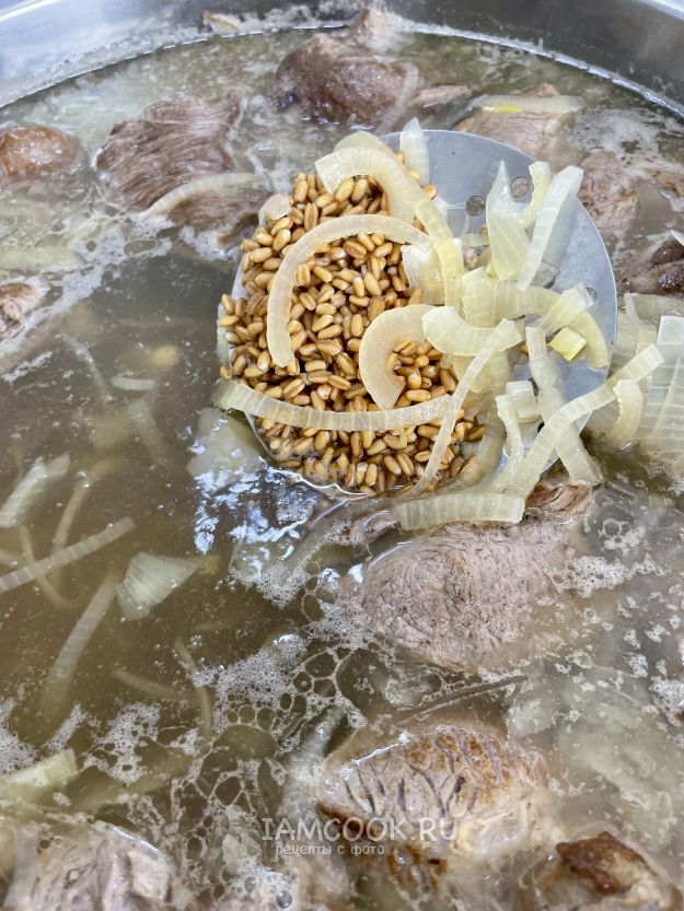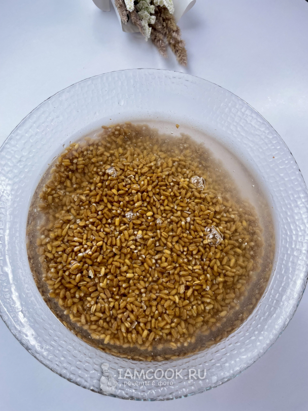 Промываем пшеницу 3 раза. И добавляем в кастрюлю.