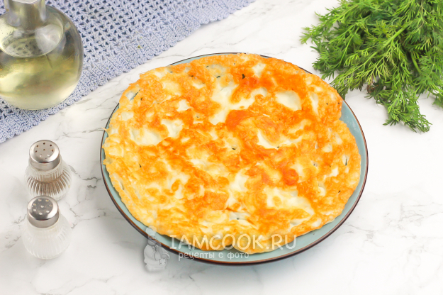 Прижимая сыр лопаткой ко дну сковороды, дайте ему расплавиться минуты 2-3. Вы удивитесь, как он легко принимает любую форму при нагревании. Обжарьте сыр с одной стороны до румяности - об этом будут свидетельствовать поджаренные края сырной лепешки. По желанию можно перевернуть его широкой лопаткой на другую сторону, но мне хватило и этого.