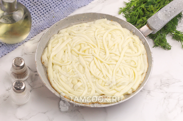 Аккуратно переверните сковороду над тарелкой и выложите жареный чечил, поддевая его вилкой или лопаткой.