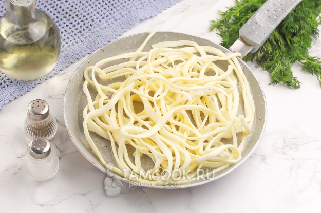 Нарвите или нарежьте сыр на одинаковые отрезки, чтобы вам было легче его жарить.