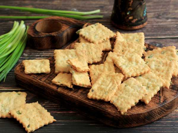 Охладите соленые хрустящие крекеры и подавайте их к столу.