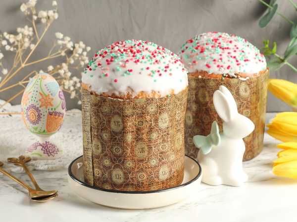 Куличи остудить в форме и аккуратно достать. Взбить охлажденный белок с сахаром до плотной пышной массы и украсить готовой помадкой куличи.