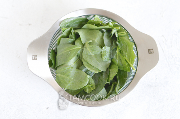 Листья шпината необходимо будет перебрать, удалить стебельки. Листочки шпината промыть и высушить на бумажном полотенце.