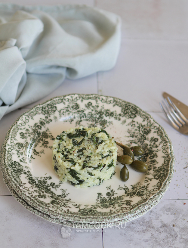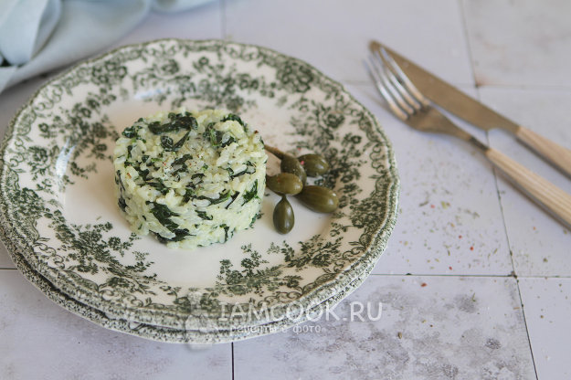 Рис со шпинатом и сливками готов. Получилось простое, аппетитное и очень вкусное блюдо.