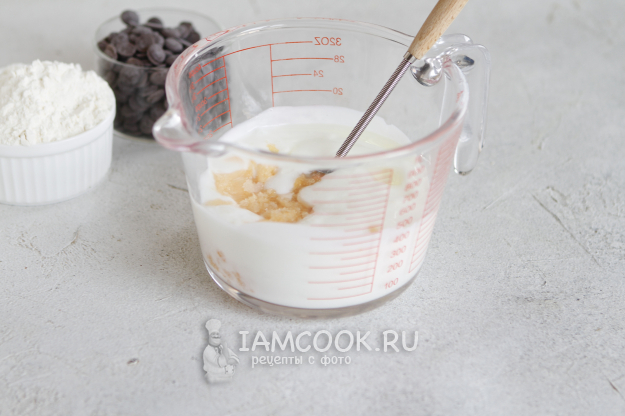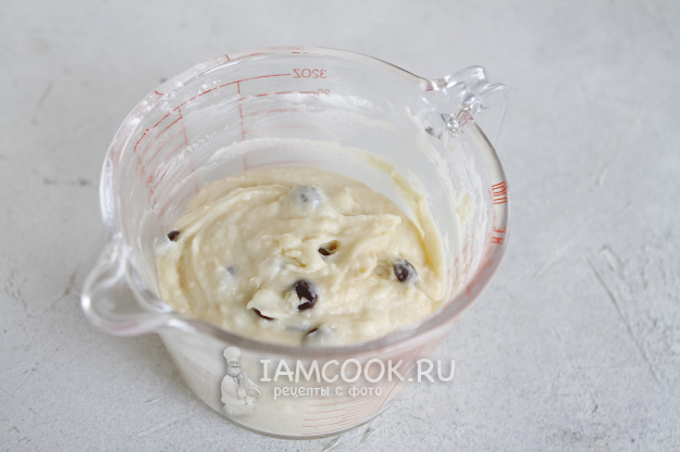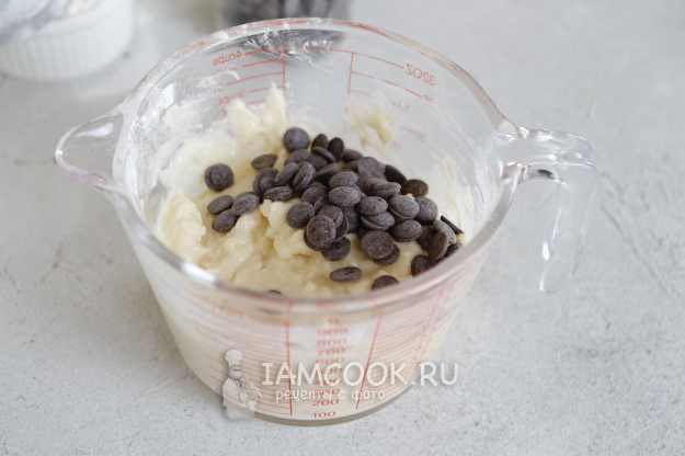 Шоколадные капли добавьте в уже готовое тесто и еще раз перемешайте.