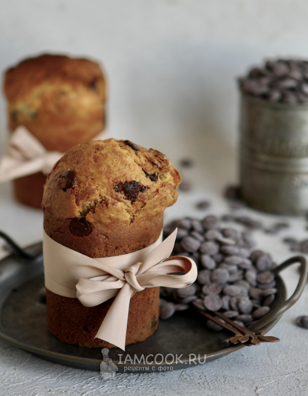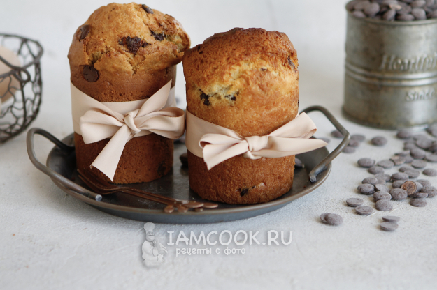 Кефир я использовала 3.2% жирности, шоколад - тёмный в каплях Callebaut, растительное масло - самое обычное, без запаха. Из этого количества теста у меня получилось 2 небольших кулича. Если вам нужно больше выпечки, то в этом случае просто увеличьте все продукты.