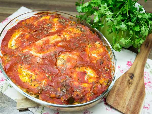 Запекайте в духовке при температуре 190 градусов 10-15 минут, до расплавления сыра.