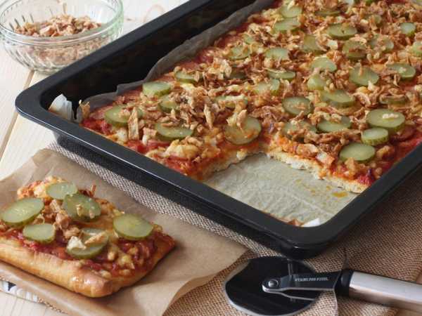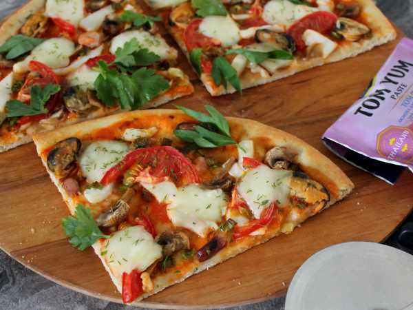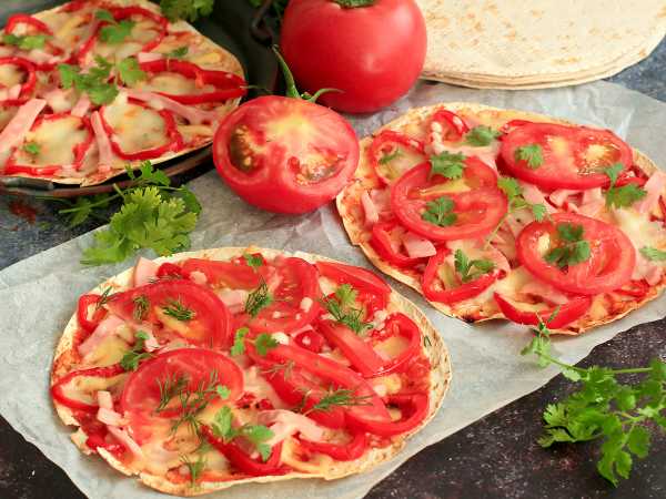 Соберите ингредиенты для приготовления пиццы на скорую руку в духовке.