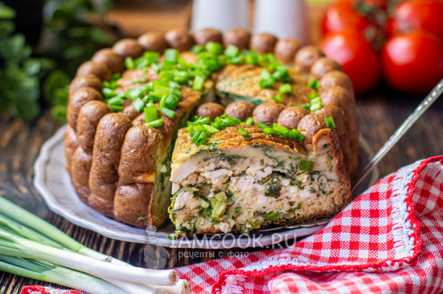 Нарежьте заливной пирог с творогом и зеленью на кусочки и подавайте. Приятного аппетита!!!
