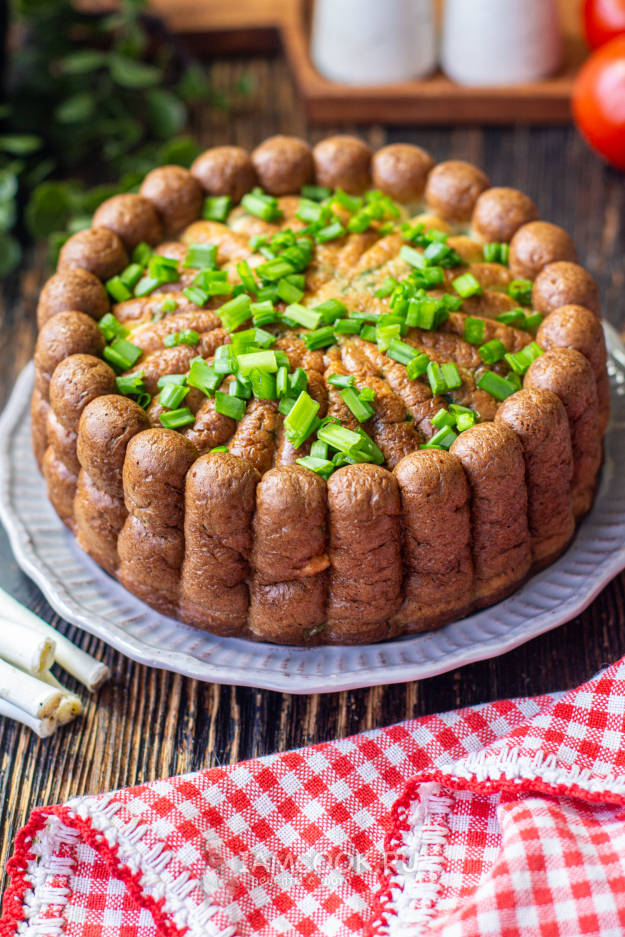 Достаньте готовый пирог, дайте ему остыть, а затем аккуратно переложите на блюдо.