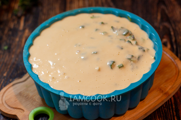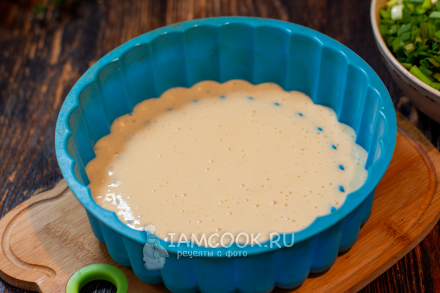 В силиконовую форму налейте половину теста. Если используете другую форму, то смажьте ее маслом или выстелите пергаментом.