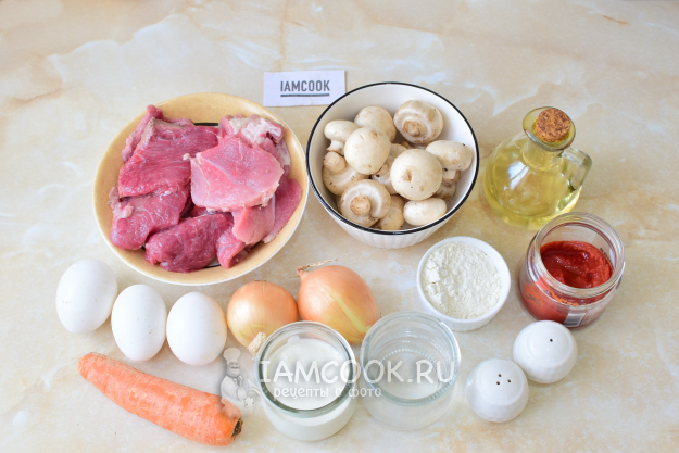 Чтобы приготовить мясные зразы с подливкой в духовке, соберите необходимые ингредиенты по списку. Мясо можно взять любое. Я беру свинину и говядину.
