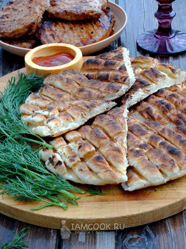 Лепёшка нетолстая, пропекается быстро, можно для гарантии покрутить решетку еще пару раз.