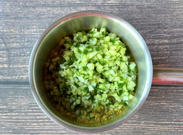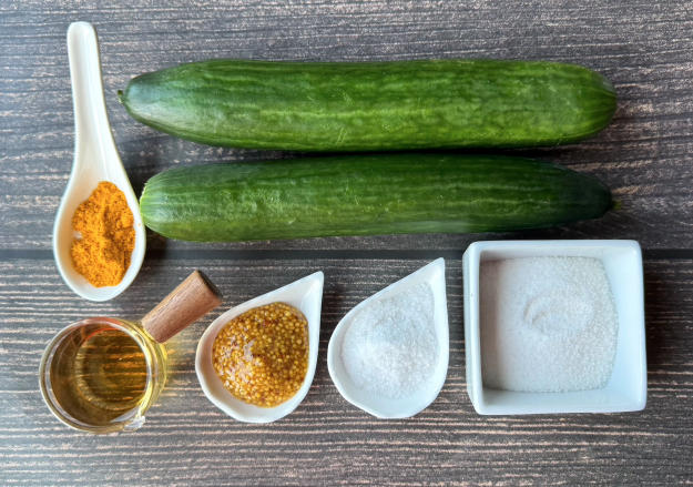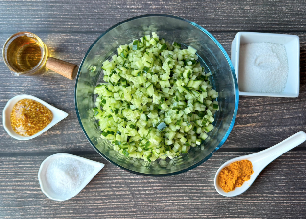 Для приготовления релиша из огурцов соберите все необходимые продукты по списку.