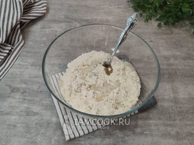 Тесто для чебуреков всегда делаю на кипятке. Они не лопаются, не раскрываются при жарке, тесто получается очень хрустящим, пузырчатым (а вареники и пельмени на таком тесте не трескаются в морозилке, а потом при варке 👌). Всыпьте в миску муку, не всю, оставьте граммов 40-50. Добавьте соль, масло, влейте кипяток.