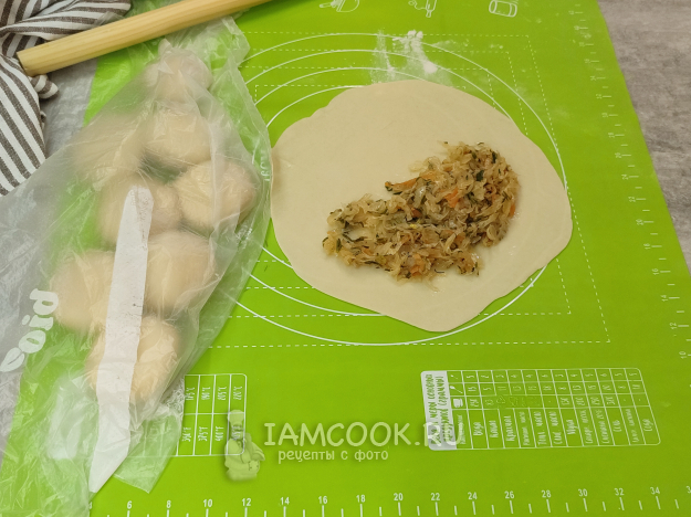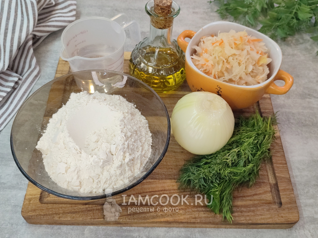 Соберите ингредиенты для приготовления чебуреков с квашеной капустой. Их немного и они крайне просты.