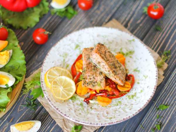 Запекайте рыбу с сельдереем в духовке при температуре 180 градусов 20-25 минут. Если форма у вас керамическая, как у меня, то ставьте её в холодную духовку.