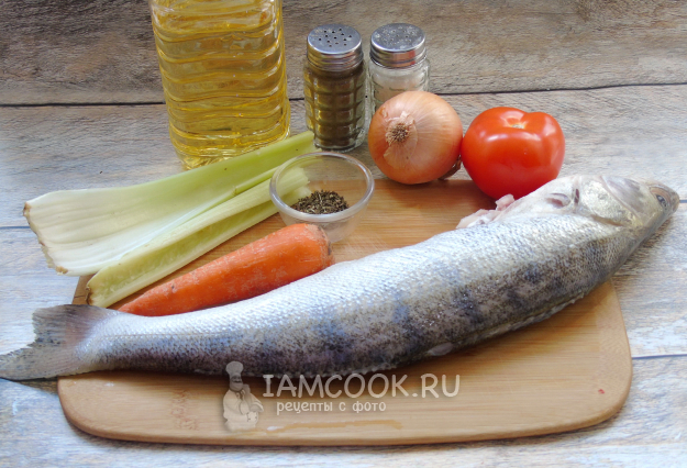 Соберите ингредиенты для приготовления рыбы с сельдереем в духовке.