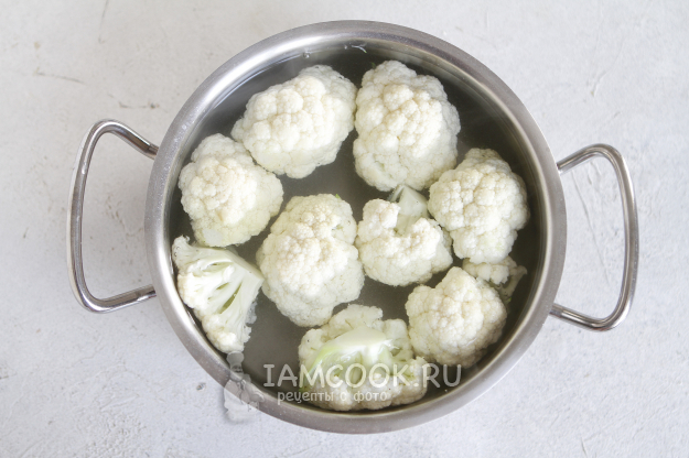 Это блюдо можно приготовить как из свежей, так и из замороженной цветной капусты. И в одном, и во втором случае капусту нужно будет немного отварить.