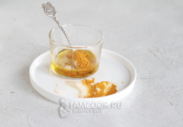 Подготовьте специи и оливковое масло. Соедините масло со специями и хорошо перемешайте.