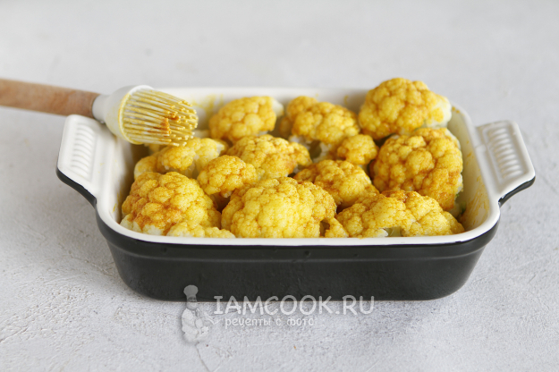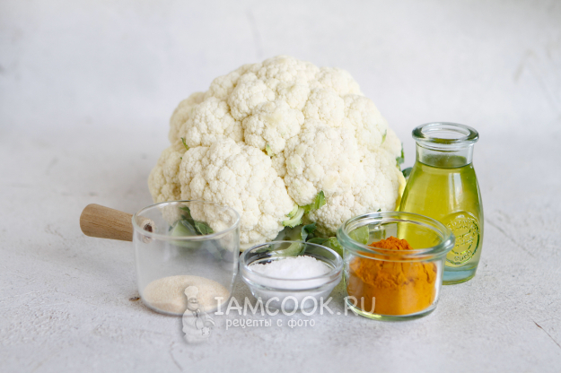 Для приготовления цветной капусты в духовке с куркумой соберите все необходимые продукты по списку.