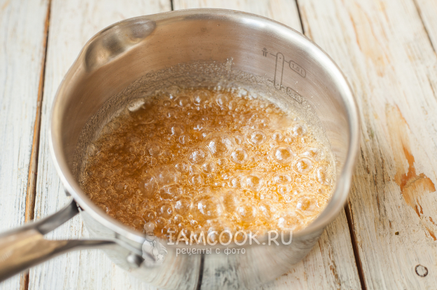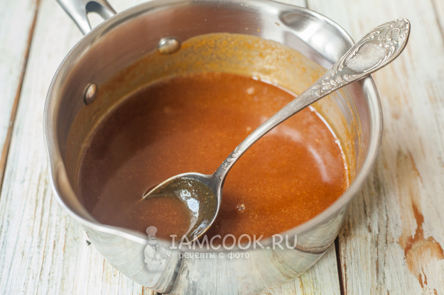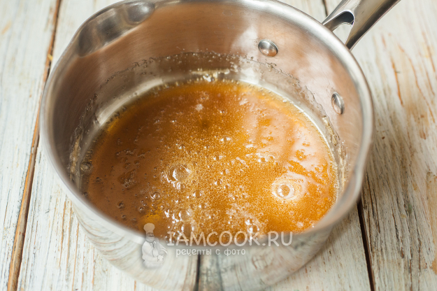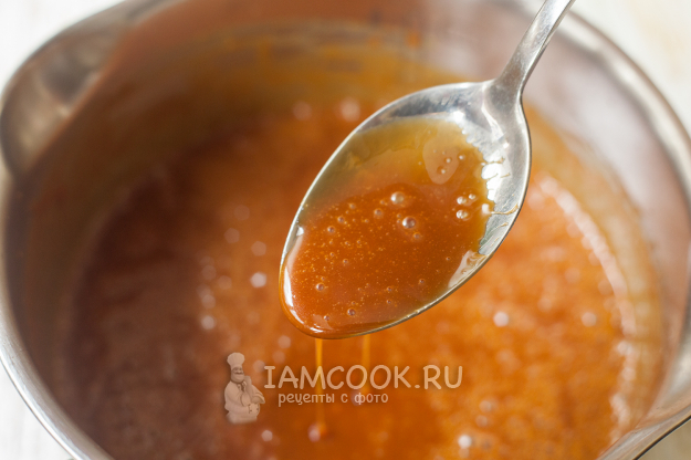 Готовая к дальнейшему приготовлению карамель должна стать прозрачно-янтарной.