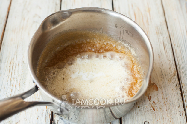 А потом темнеть. Здесь карамель еще не готова, т.к. не весь сахар растаял.