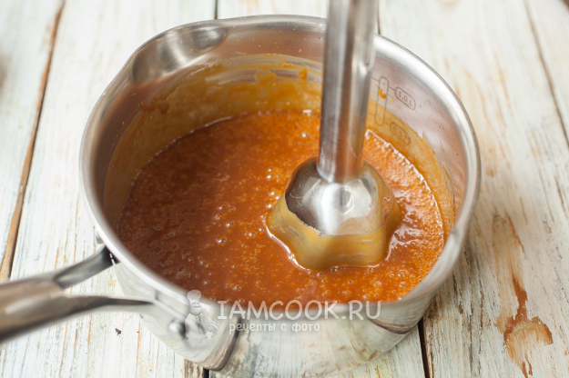 Горячая карамель будет жидковатой, но после стабилизации в холодильнике загустеет. Если хотите получить густую карамель, добавляйте меньше сливок, если более жидкую (для поливки мороженого, вафель, блинчиков, сырников) – больше. Из-за взбивания блендером в карамели образуется много пузырьков воздуха, чтобы от них избавиться, процедите ее через мелкоячеистое сито (я не процеживала, для меня это было некритично).