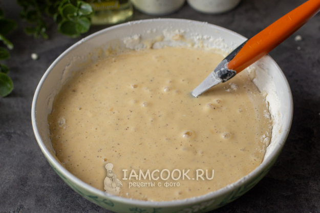 Перемешайте муку с молочной смесью, чтобы получился густой кляр без комочков, по консистенции - примерно как на оладьи или как густая сметана.