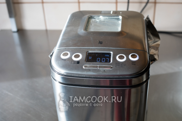 Я использую Режим 1 (Обычный хлеб), вес - 750, среднюю корочку. Общая продолжительность процедуры у моей машинки была 3 часа 15 минут. Фольга под крышкой призвана сделать более румяной верхнюю корочку.