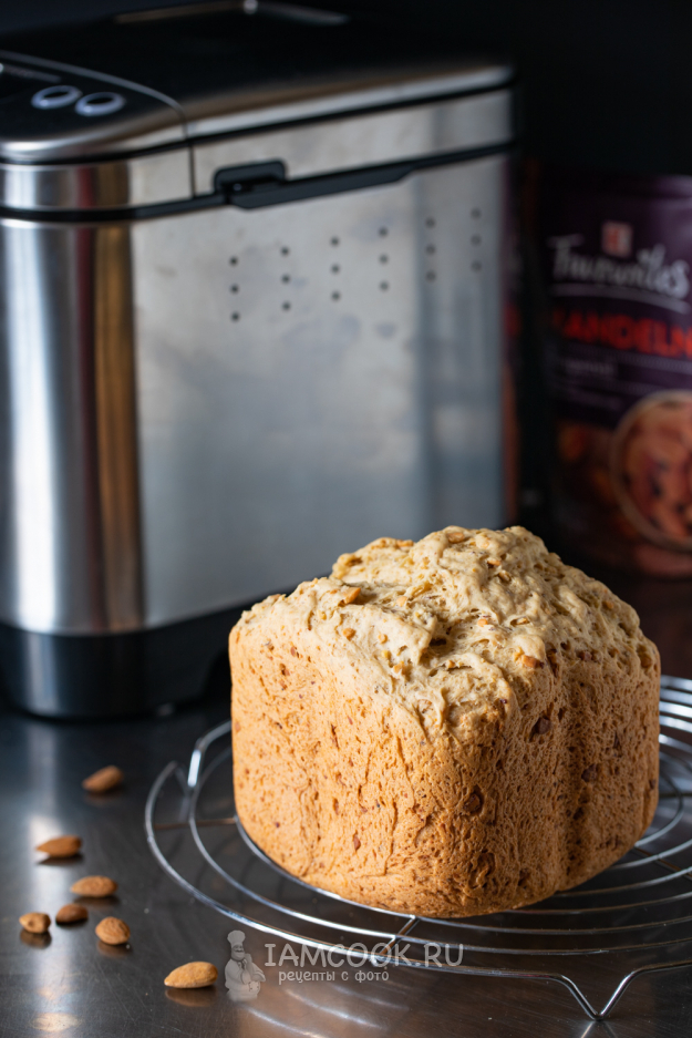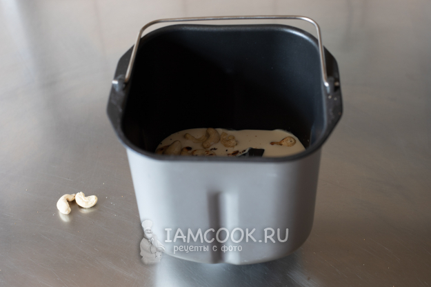 Очень важно: перед хлебопечкой орехи желательно слегка обжарить (минутки три, чтобы они подрумянились самую капельку).