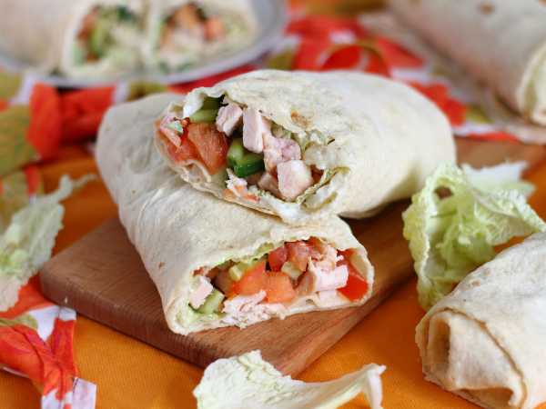 Сверните рулетом. Аналогично поступите еще с двумя квадратами лаваша.