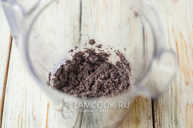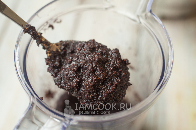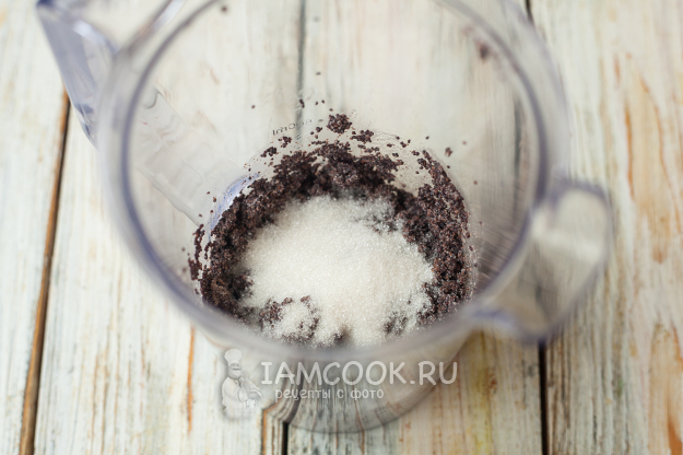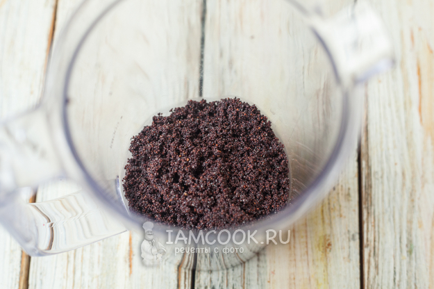 Переложите мак в удобную емкость и пробейте погружным блендером. В процессе измельчения маковые зернышки станут белесыми, но это только до добавления сахара.