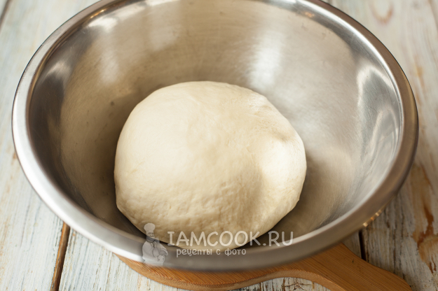 Как и любое дрожжевое тесто, это постное тесто «любит» долгий замес – так лучше разовьется клейковина, и булочки получатся более пышными. Поэтому месите не менее 10-15 минут. Можно руками, можно тестомесом. В итоге тесто должно получиться гладким, чуть липнущим. Округлите его и переложите в глубокую миску, смазанную изнутри растительным маслом, натяните сверху пленку и поставьте для подъема в теплое место. У меня на подъем ушло около 1 часа.
