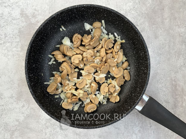 Обжарьте их на растительном масле с нарезанным луком несколько минут, пока лук не станет мягким и прозрачным.