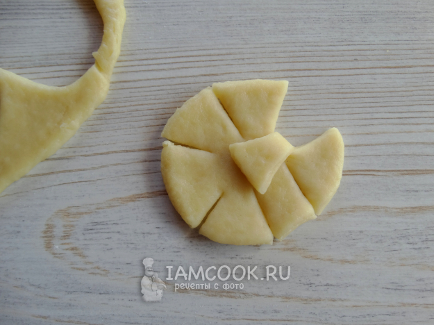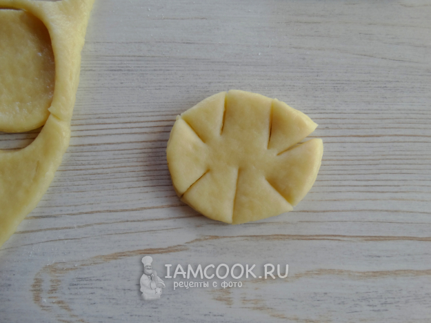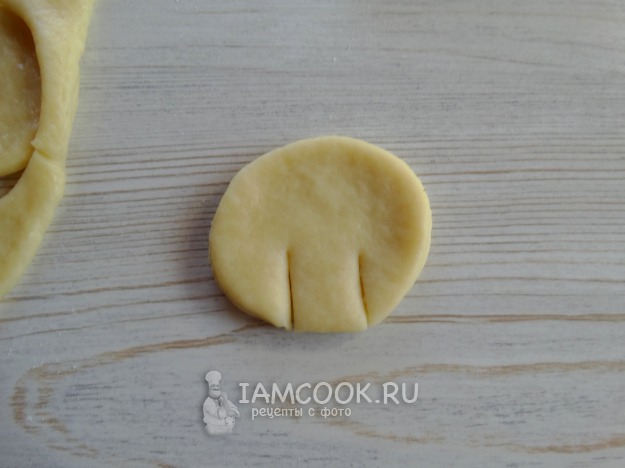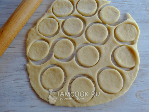 Тесто раскатать, вырезать кружочки.