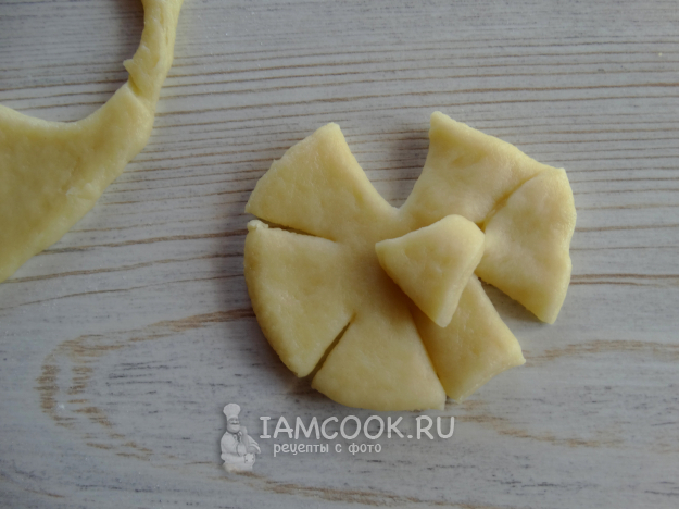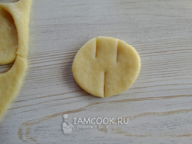 Я сделала маленькие кружочки, их ещё немного раскатала, до большего размера.