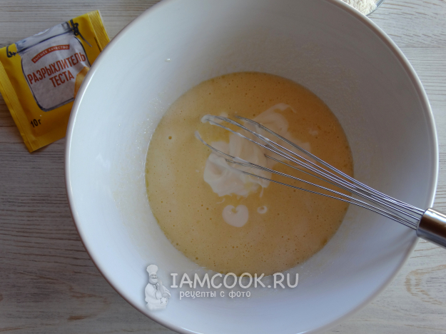 Всыпать муку и разрыхлитель.