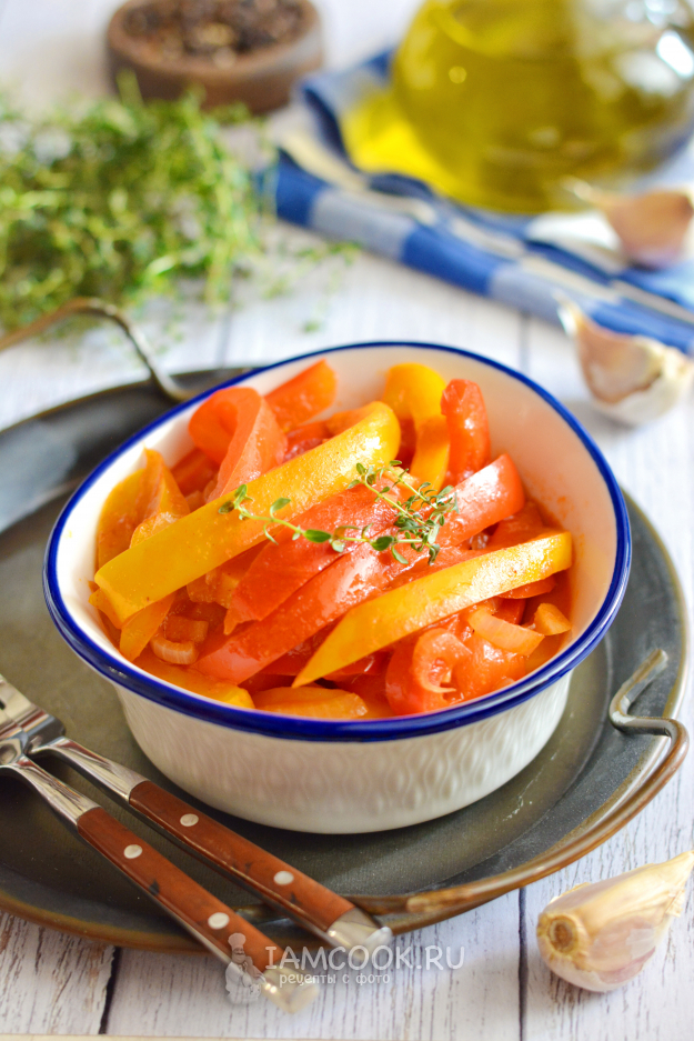 Тушеный болгарский перец готов. Подавайте его в горячем или холодном виде.