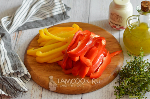 Если решите резать соломкой, то нарезайте вдоль плода, так перец лучше сохранит форму.