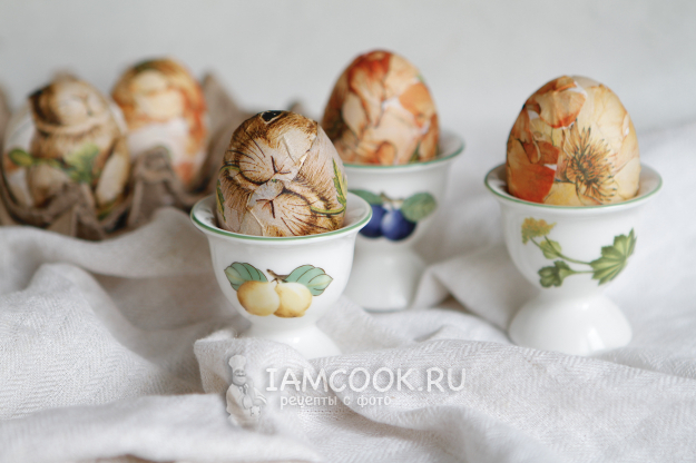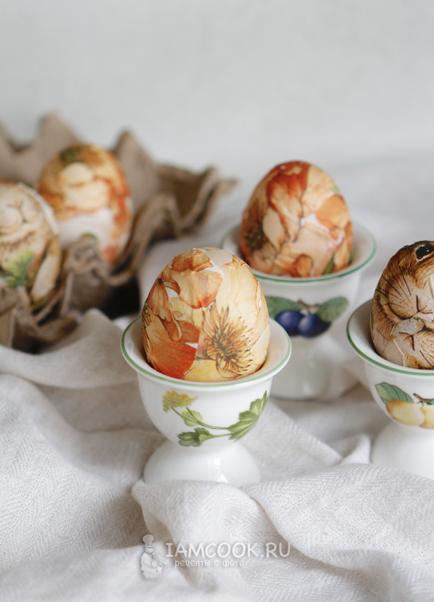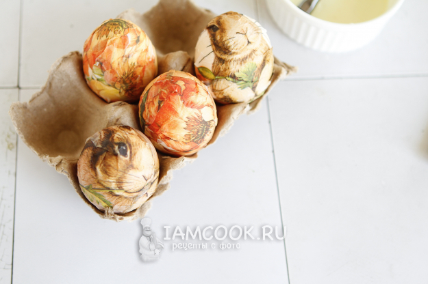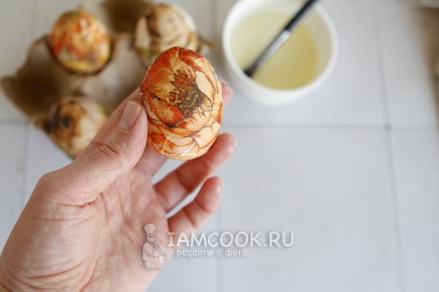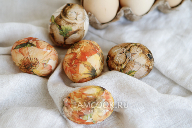 Во время декора могут быть небольшие неровности, когда салфетка заходит на салфетку. Не расстраивайтесь, возьмите ножницы, сделайте небольшие надрезы и расправьте рисунок. Правда, поверьте, это не столь важно. В любом случае яйца получатся красивыми.